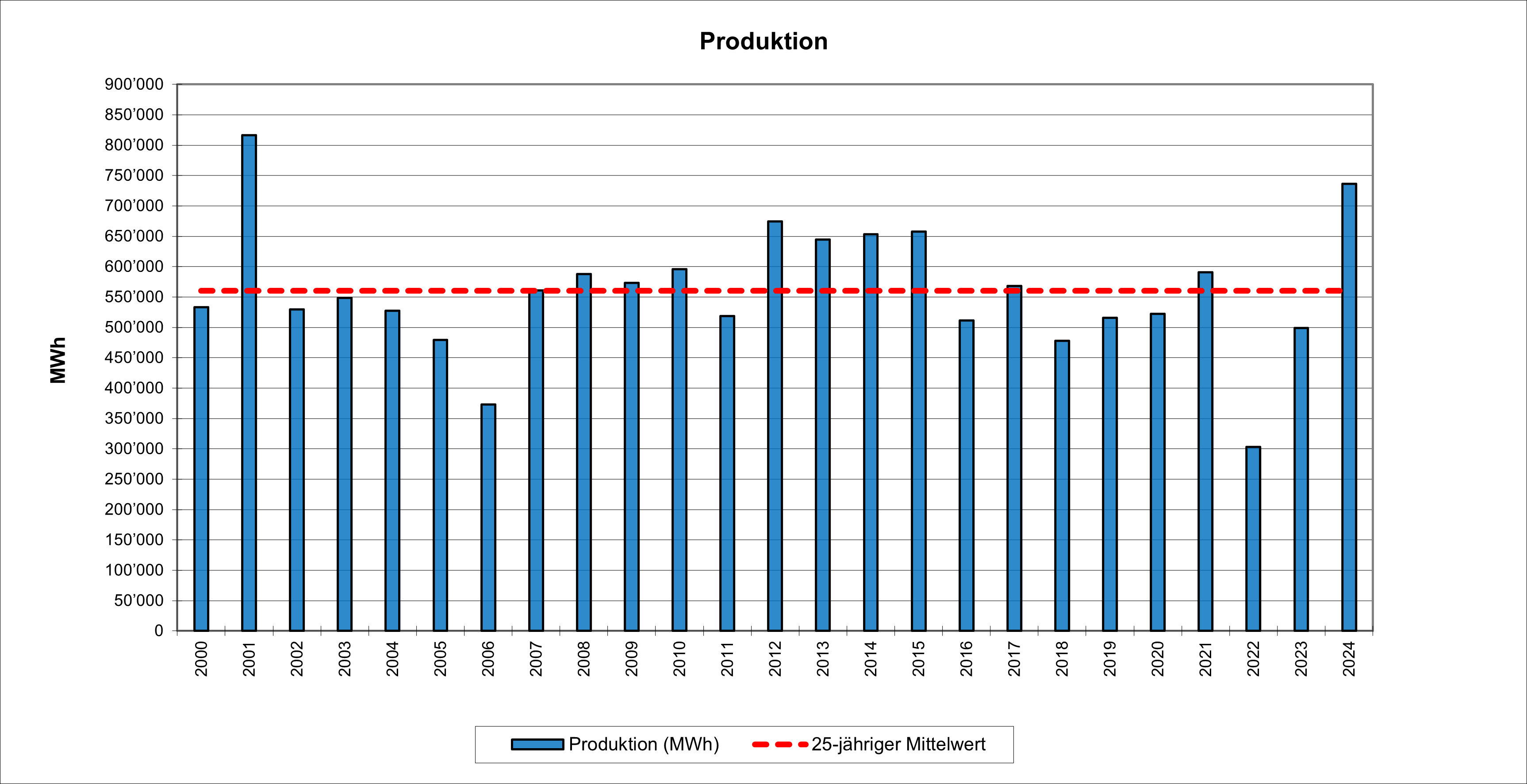 Durchschnittliche Energieabgabe an die Partner im Mittel der letzten 25 Jahre: | 515’428 MWh |